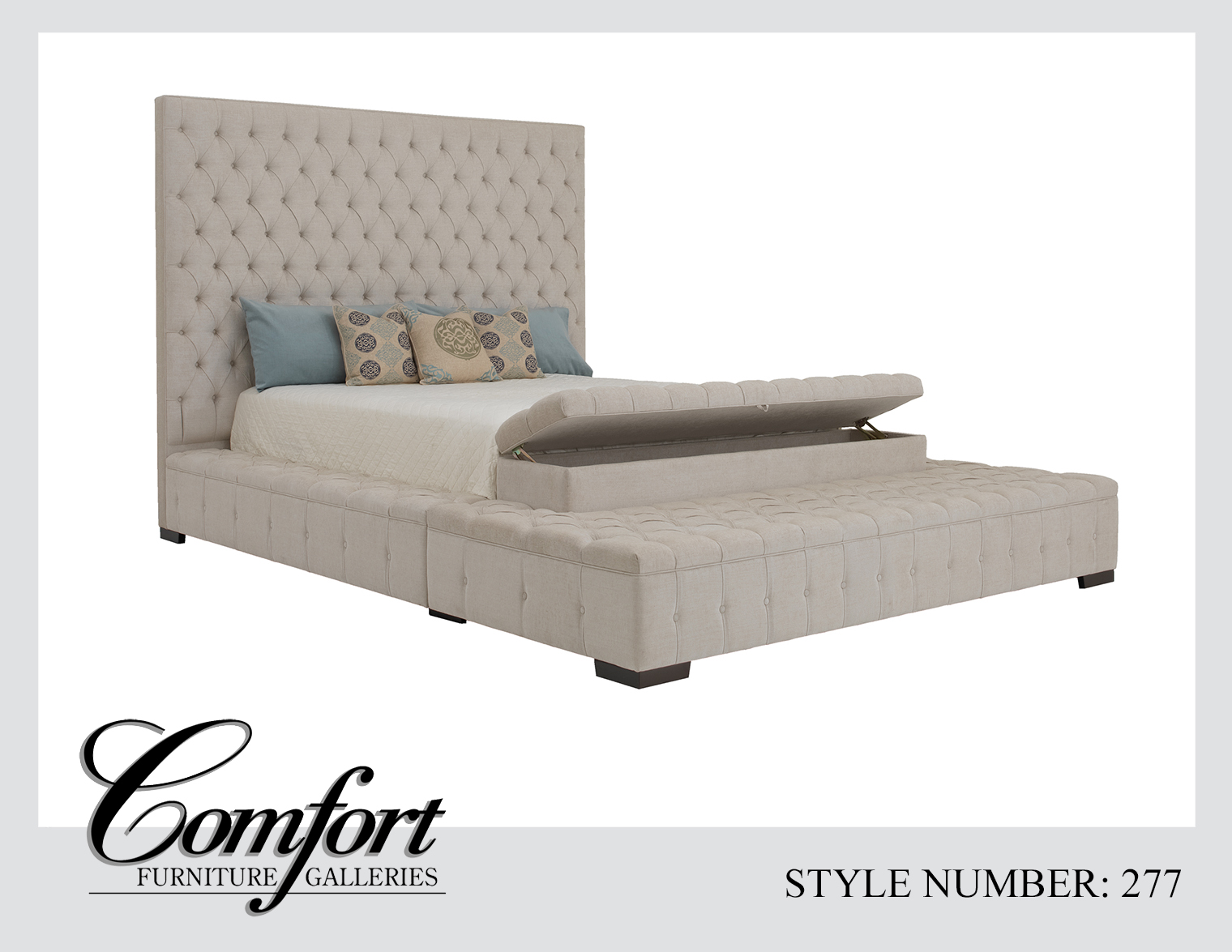The 277 Bed is a dramatic showpiece, designed for those who want luxury to make a bold statement. With its soaring tufted headboard and fully upholstered frame, this bed embodies grandeur, elegance, and comfort all in one.