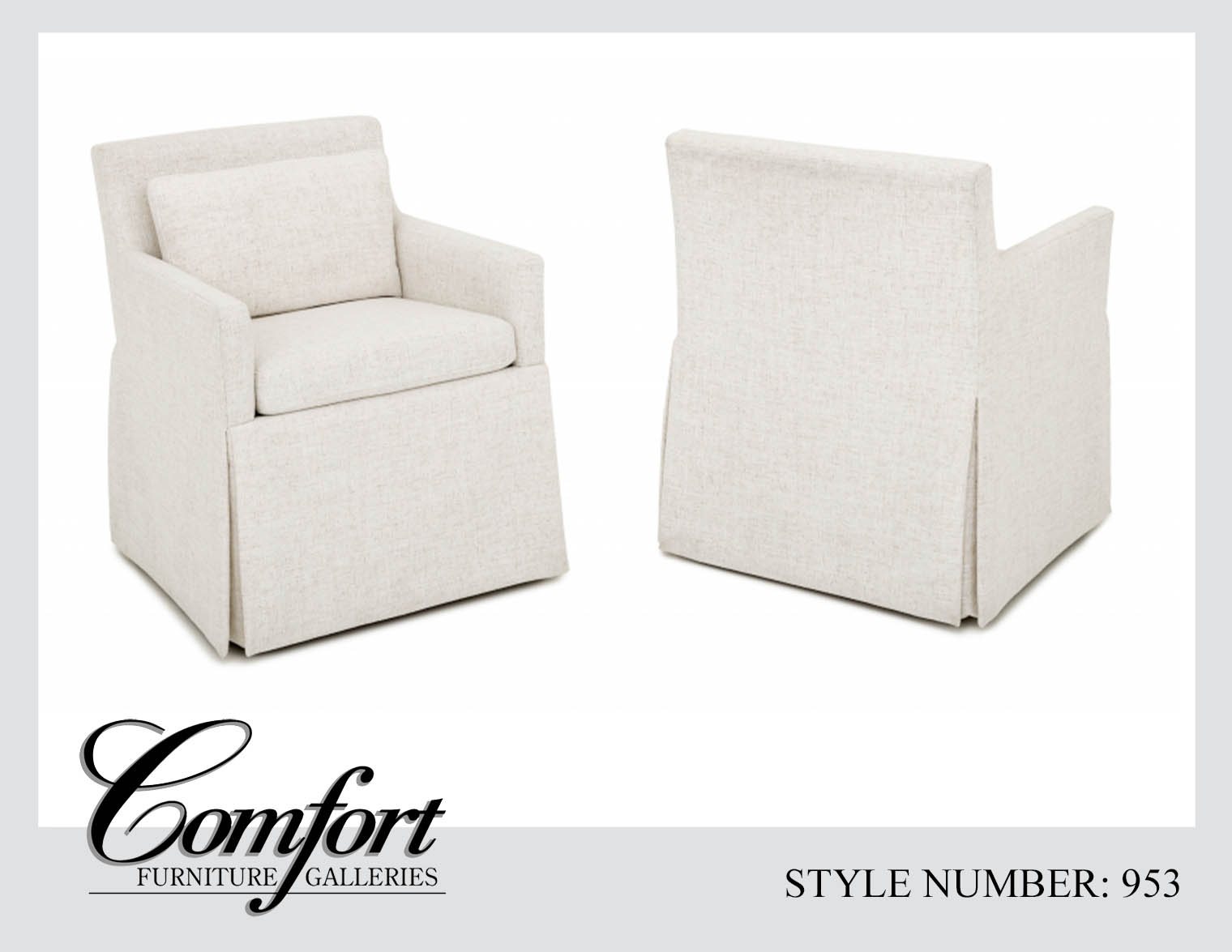 The Skirted Swivel Dining / accent Chair blends classic tailoring with modern functionality, making it a versatile choice for any home. Its clean, structured style is softened by a full-length skirt, creating an elegant yet relaxed look. The plush seat and back cushion provide exceptional comfort, while the hidden swivel base adds convenience without compromising style.